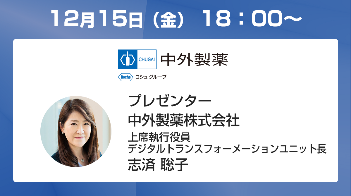 当社は、イノベーションの追求により革新的な医薬品とサービスを提供する研究開発型の製薬企業です。戦略パートナーのロシュ社との連携により、高収益でユニークなビジネスモデルを築いています。デジタル技術でビジネスを変革し、社会を変えるヘルスケアソリューションの提供を目指したDXの取組みを中心にご紹介します。